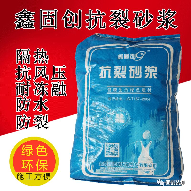產(chǎn)品簡介: 鑫固創(chuàng)抗裂砂漿又叫聚合物抹面抗裂砂漿是專門為保溫系統(tǒng)之膠粉無機(jī)保溫系統(tǒng)而設(shè)的柔性防開裂水泥基抹面保護(hù)膠漿,是采用高標(biāo)號普硅水泥,優(yōu)良石英砂,添加高質(zhì)量膠粉和多種功能性添加劑、外加劑均混而成的粉狀產(chǎn)品。該產(chǎn)品無毒無味,安全環(huán)保,施工方便,現(xiàn)場加適量水配制成漿狀即可施工??沽焉皾{用于粘結(jié)玻璃纖維網(wǎng)格布及抹面,可形成具有一定柔韌性的水泥基外墻面保護(hù)層,用以保證外墻外保溫體系的機(jī)械強(qiáng)度和耐久性。產(chǎn)品特點(diǎn)使用本產(chǎn)品進(jìn)行施工的保溫系統(tǒng),有效地解決了外墻外保溫的保溫、隔熱、抗風(fēng)壓、耐凍融、防水、防裂等問題。同時(shí)具有高粘貼性能及塑變?nèi)犴g度,防水性能優(yōu)異,持久耐老化與建筑同步。與后繼施工的多種飾面層匹配性廣泛,使用環(huán)保、操作方便等優(yōu)點(diǎn)。產(chǎn)品用途主要用于“外墻保溫系統(tǒng)”中表層的抗裂保護(hù)層,“外墻外保溫系統(tǒng)”中聚苯板、擠塑板、無機(jī)保溫等的抹面、抗裂保護(hù)層。各種“蒸汽、加氣砌塊墻體”的抹面、抗裂砂漿層。